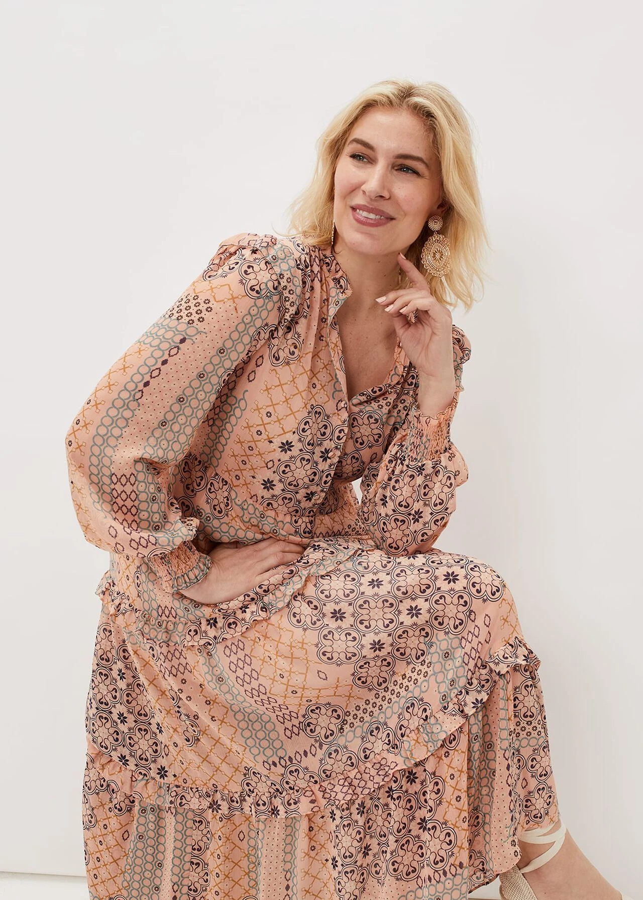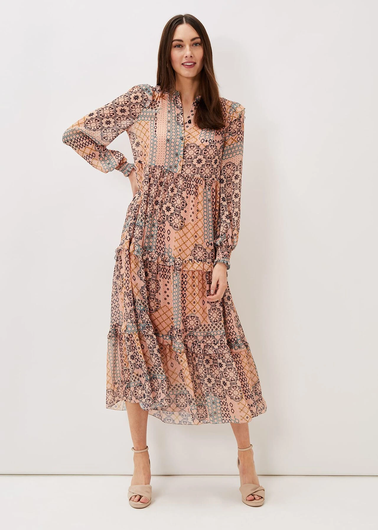Ailsa Geometric Print Chiffon Midi Dress