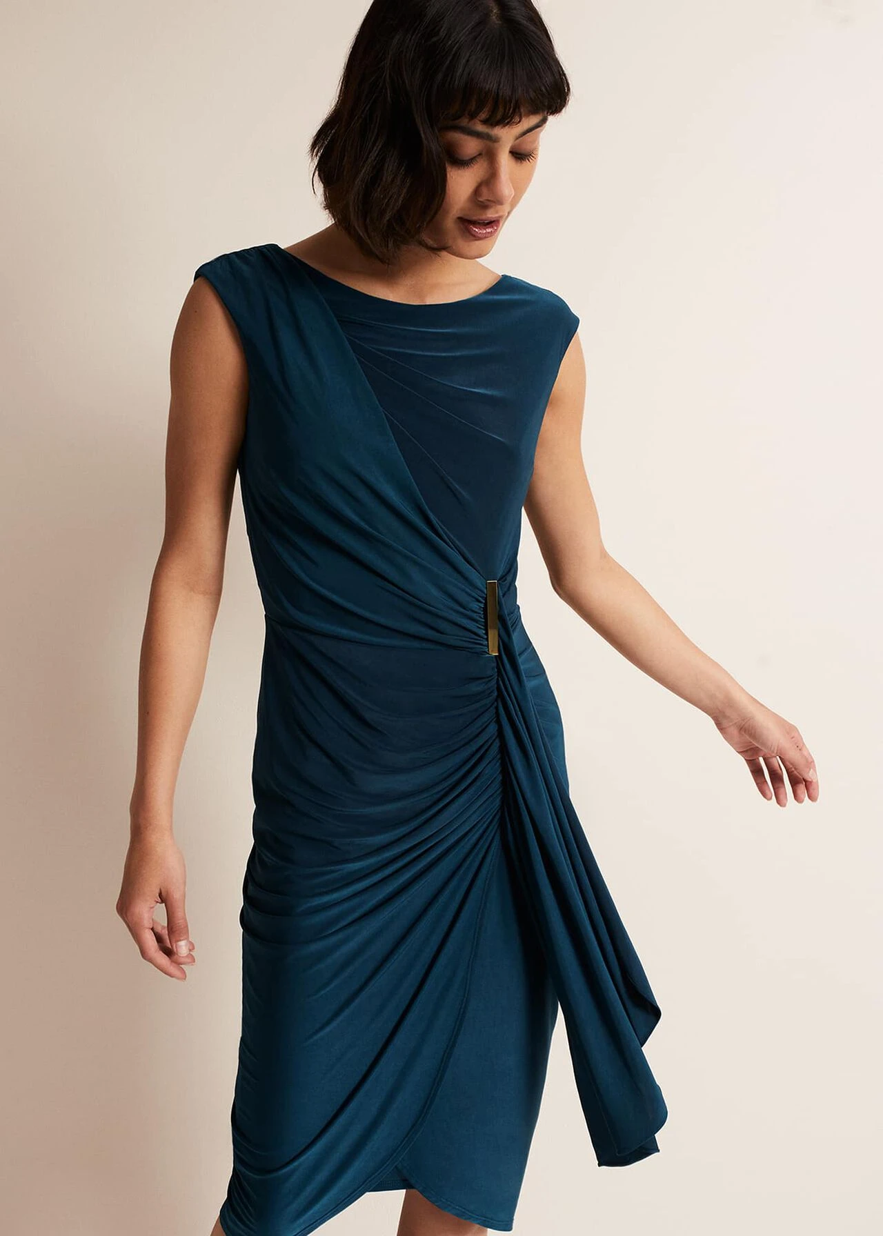 Donna Teal Bodycon Midi Dress